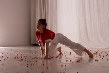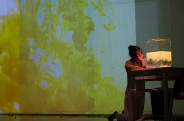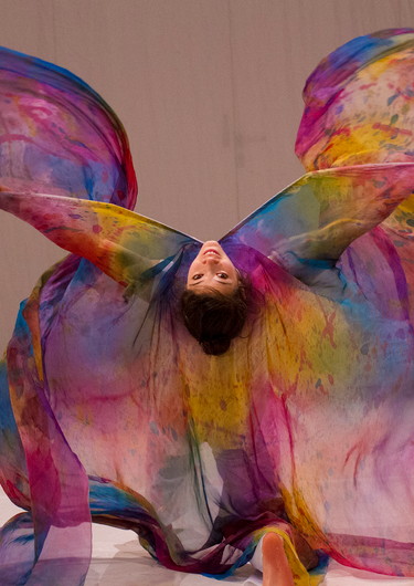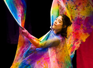 Nach einem Traum voller Farben tauchen diese plötzlich überall auf: Farbige Holzperlen prasseln aus einer Schublade, gelbe Farbe tropft in ein Aquarium, unter dem Boden wird eine grüne Wiese sichtbar und blaue Tücher schweben von der Decke. Die farblose Leere weicht einem wogenden Farbenmeer, das durch Wind und Tanz zu schäumen beginnt. Lass dich hineinziehen in das Treiben der bewegten Farbenpracht!