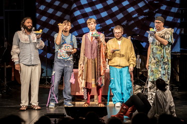 Zu den Tausendsassas des Ensembles Studio Dan stoßen Karolina Preuschl (von Wien Diesel; aka MC Rhine) als (Puppen-)Spielerin und Texterin und Robert „Slivo“ Slivovsky von den 5/8erln in Ehrʼn als Sänger, Tänzer und Performer.