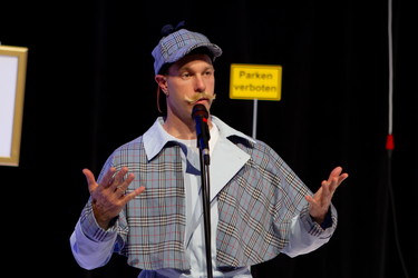 Mit gefinkelten Tricks und smarten Aufspürversuchen kann es ihm gelingen, den*die Täter*in ausfindig zu machen – aber das gelingt ihm nur mit Hilfe des Publikums! Werdet auch ihr Zeug*innen und helft uns, dieses Chaos aufzulösen.