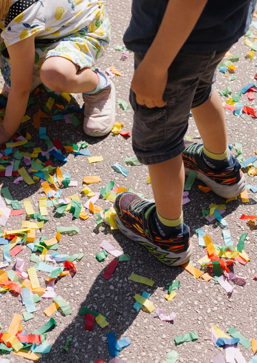 Am Welttag des Theaters für junges Publikum schlüpfen Kinder unter glitzernde Masken und verwandeln sich in einen Schwarm von magischen Wesen, deren Zaubersprüche große Kraft entfalten. Am Platz der Menschenrechte bringen sie ihre Zaubersprüche zum Klingen und die Magie des Theaters hinaus in die Stadt!