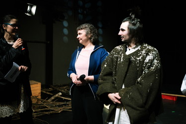 Der erste Textentwurf ist sprachlich herausragend und greift mit großer Kraft zentrale Themen der Jugendwelt auf: Manosphere, Selbstoptimierung, Krieg(spiele), Mobbing sowie das Gefühl, als Bub allein gelassen zu sein, auch durch Vernachlässigung innerhalb der Familie. Besonders spannend ist, wie sich diese Dynamiken auf das Zusammenleben, Beziehungen und das gemeinsame Aufwachen der Brüder auswirken. Gleichzeitig hat die Drastik Jugendliche im Publikum irritiert und teils starke Abwehrreaktionen ausgelöst. Gerade deshalb entsteht aber ein Reibungspunkt, der Gespräche ermöglicht. Für ein junges Publikum wäre es dennoch wichtig, dass im weiteren Verlauf auch etwas Licht und Hoffnung spürbar ist. Eure ästhetischen Entscheidungen liegen sehr gut auf diesem Text, Verfremdungen in Sound und Bild unterstützen die soziale Isolation. Besonders herausragend finden wir die Art, wie sich Constanze des jüngeren Bruders annimmt, eine Qualität die aus eurer gemeinsamen Arbeit entsteht. Beide Brüder bleiben in ihrer Gefährlichkeit ambivalent, wodurch im Publikum zwiespältige Gefühle entstehen. Es wird niemandem leicht gemacht, sich zum Inhalt eindeutig zu positionieren, und genau das macht neugierig darauf, wie es weitergeht.